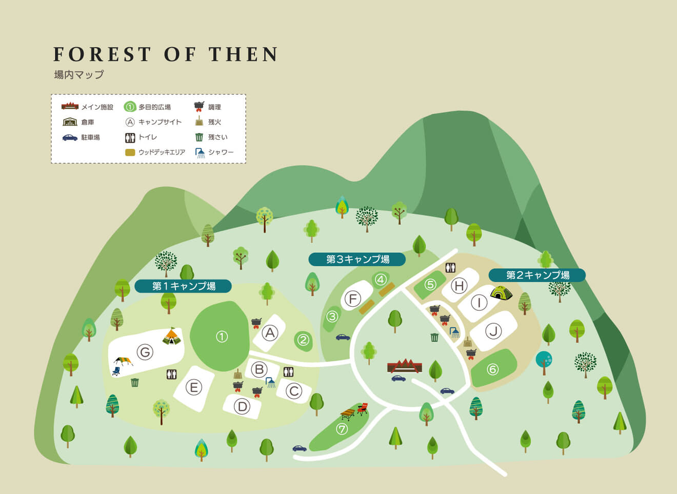 | アクティビティ | BBQ / ホタル / ハイキング / クラフト体験 / 味覚狩り / 虫捕り / 季節の花 |