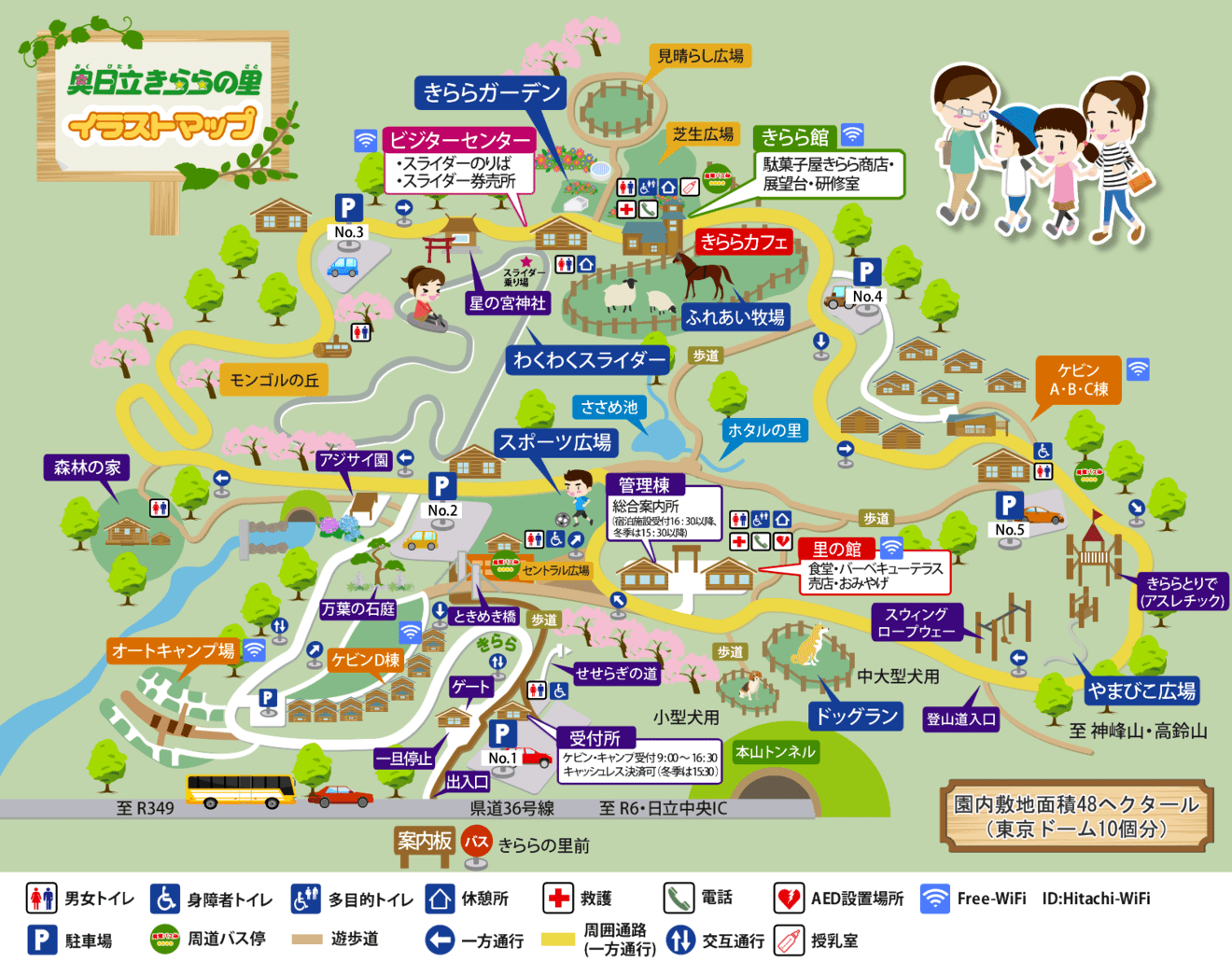 きららとりで 設置してある遊具は無料でお使いいただけます。お子様が利用する際には大人の方が付き添っていただきますようお願いいたします。