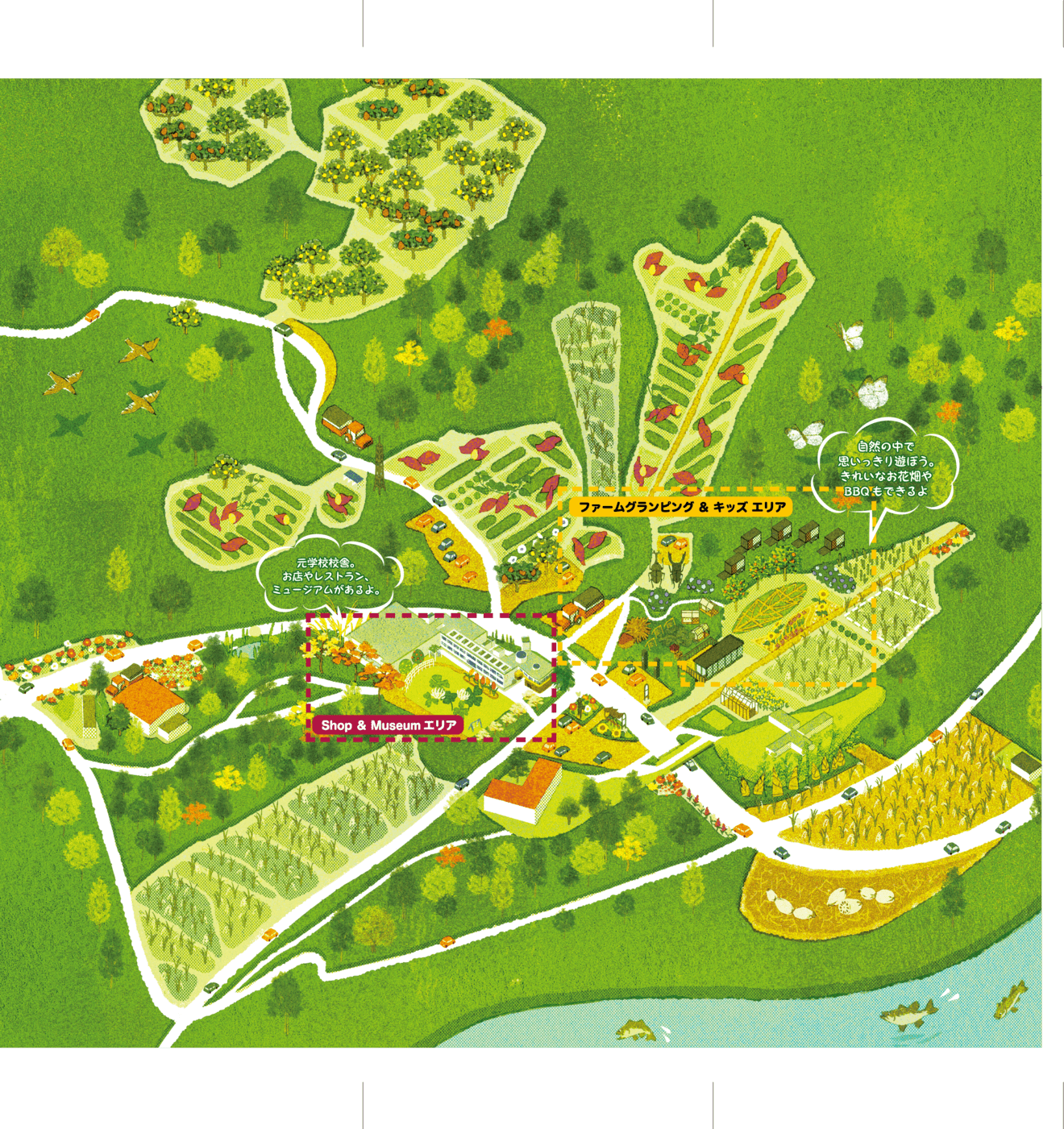 | アクティビティ | BBQ / 子供用遊具 / 味覚狩り / 季節の花 / 虫捕り / ツリーハウス |