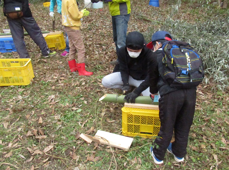 自然環境体験学習ができる用意がしてあります。放置竹林の整備作業や竹を利用した竹パウダーづくり、竹炭づくり、竹細工などの体験ができます。その他、時季に応じた筍取りやビオトープ、野菜栽培などの体験もできます。