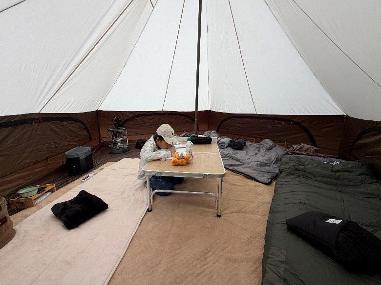 広さは64㎡~104㎡と場所によります。地面は草地なので、テント内はフカフカで快適に過ごすことができました。