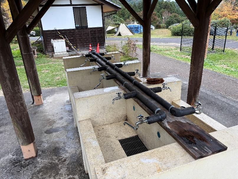 炊事場は屋根付きのシンクが並び、十分な数の蛇口が設けられていますが、お湯は出ない為、冬場や油汚れの多い調理後は、お湯を沸かして使用するといいかもしれません。