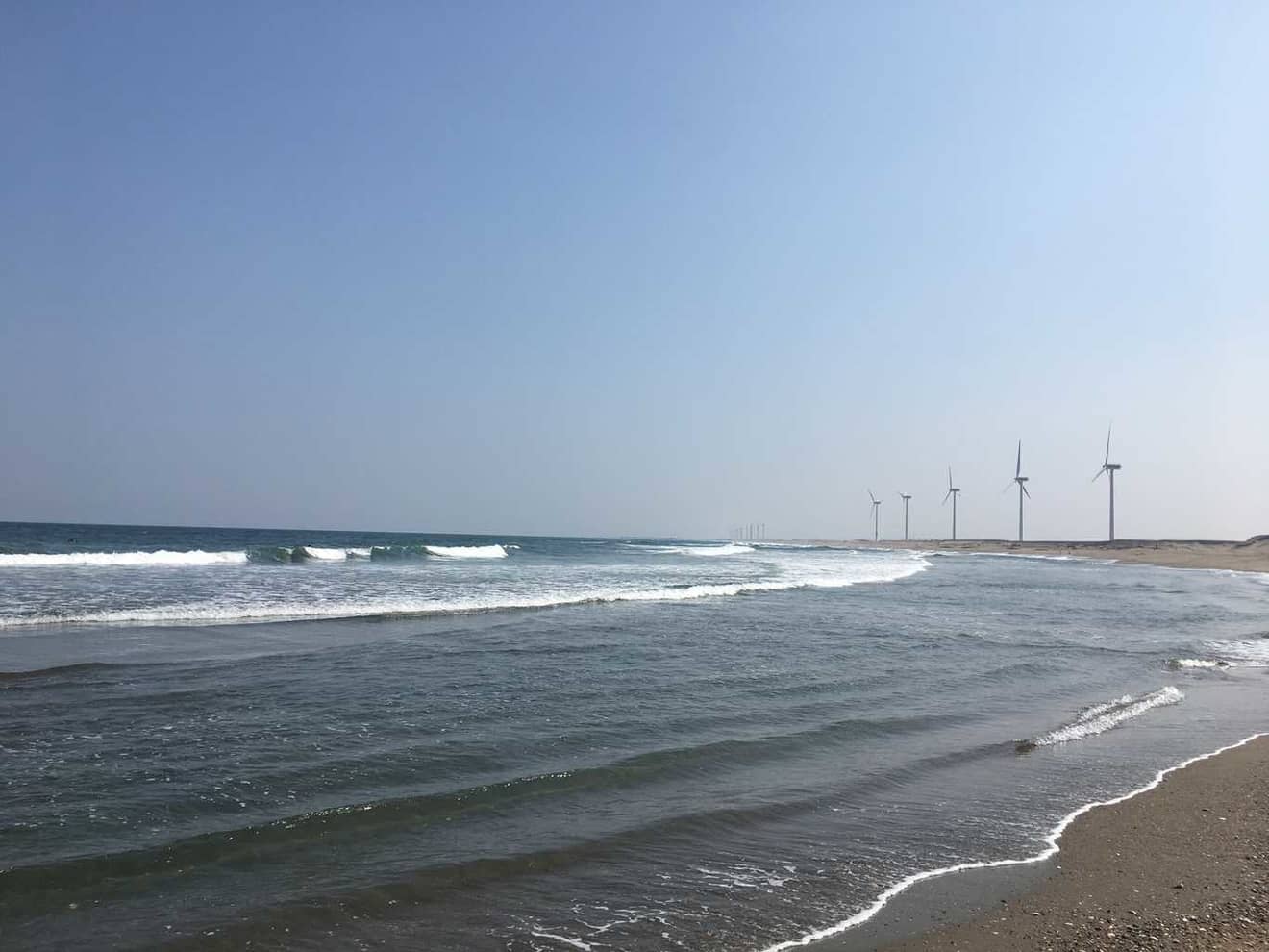 広大な砂浜まで徒歩3分!巨大な風車が並ぶ海岸線の絶景と、歩いて行ける距離に温浴施設「ふれあいセンター湯楽々」がある利便性抜群の市営キャンプ場です。