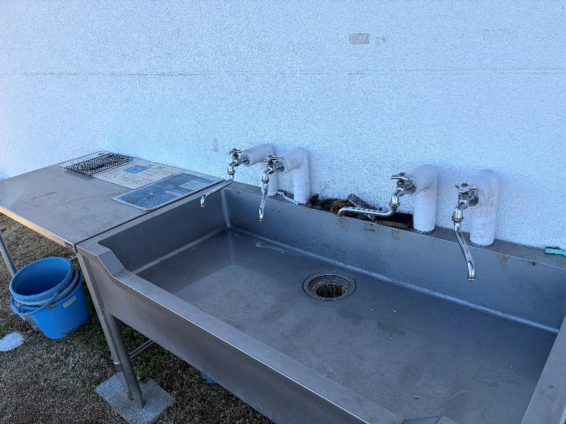 水場もトイレのすぐ裏手にあって、こちらも清潔感あり。お湯は出ませんが、手洗いや簡単な洗い物なら全然問題ありません。