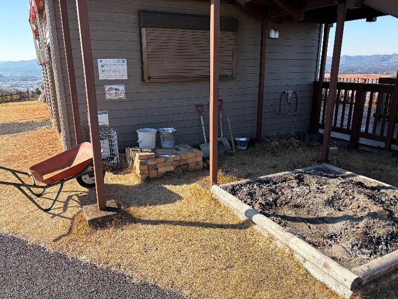 焚火をするときには、芝の保護の為、備え付けのレンガを焚火台の下に忘れずに設置しましょう。
