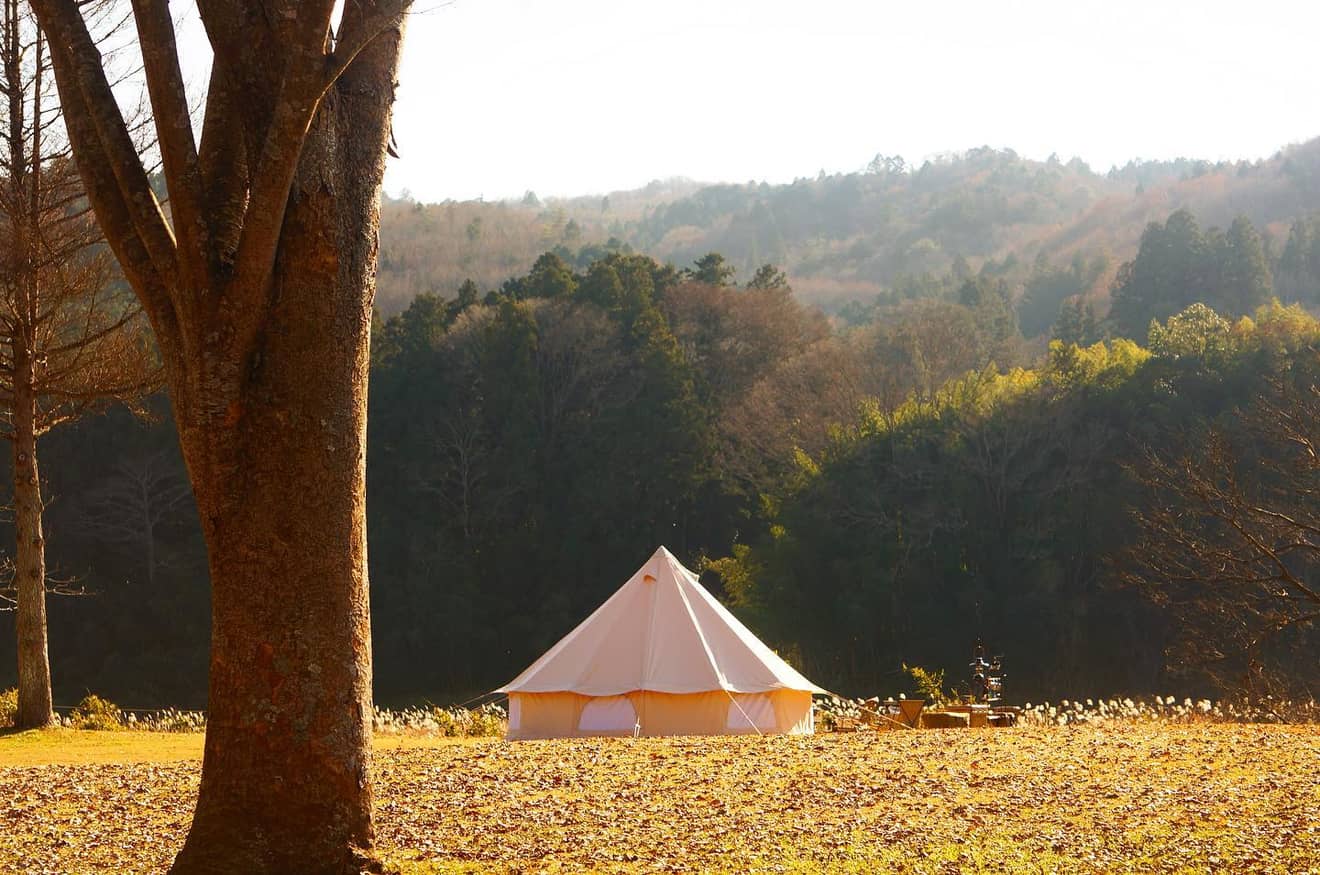 温泉から車で2分!1日5組限定のプライベートキャンプを楽しむことのできる「Campo giardino」では常設テントサイトやレンタル品も充実しているので手ぶらもOK!初心者の方でも安心して楽しむことができるキャンプ場です。
