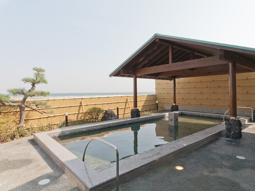 太平洋を望むことができる露天風呂付き温泉。湯上りには新鮮なとれたての魚介類が